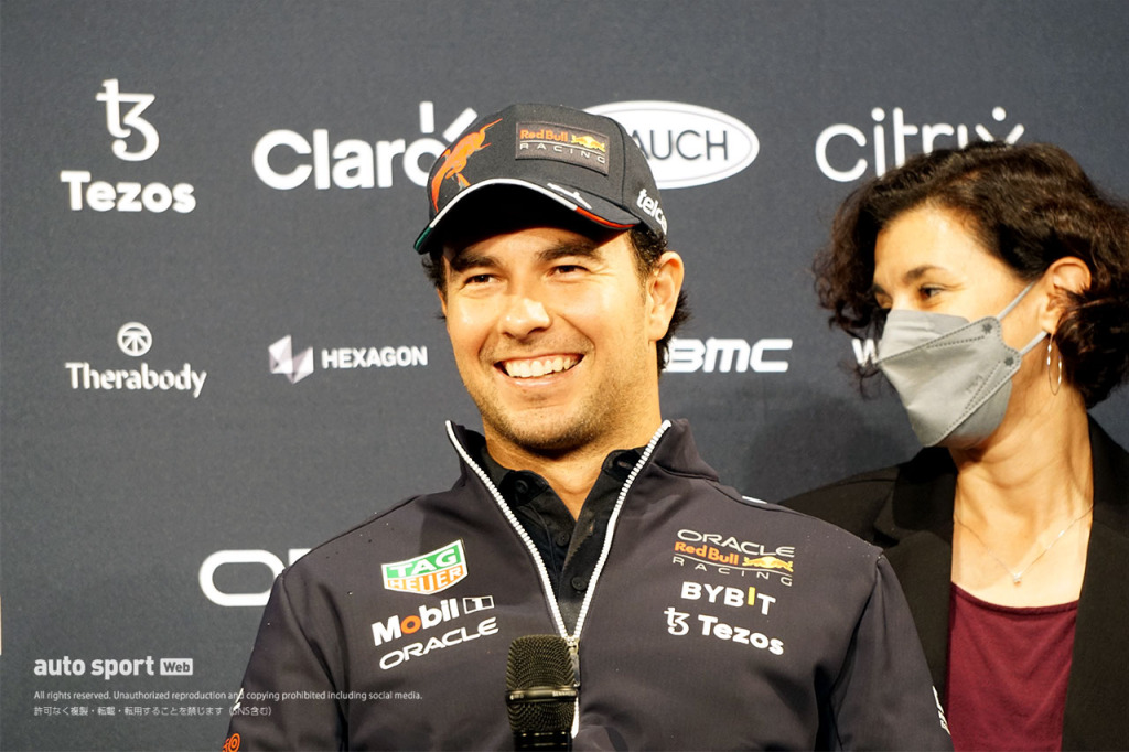 レッドブルのメディアセッションで笑顔をみせるセルジオ・ペレス