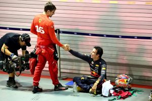 2022年F1第17戦シンガポールGP 2位のシャルル・ルクレール(フェラーリ)と優勝したセルジオ・ペレス(レッドブル)