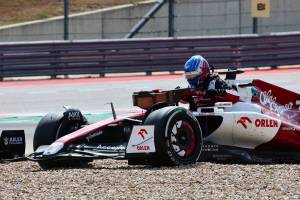 2022年F1第19戦アメリカGP グラベルにはまり、リタイアとなったバルテリ・ボッタス(アルファロメオ)