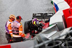 周冠宇、クラッシュでリタイア「ブレーキペダルに触れた途端にアクアプレーニングが起きた」アルファロメオ/F1第14戦