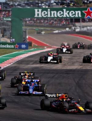 2023年F1第19戦アメリカGP ポジションを争うオスカー・ピアストリ(マクラーレン)とマックス・フェルスタッペン(レッドブル)