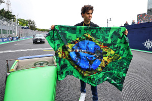 2025年F1第21戦サンパウロGP ドライバーズパレードでブラジルの国旗を掲げたガブリエル・ボルトレート(キック・ザウバー)