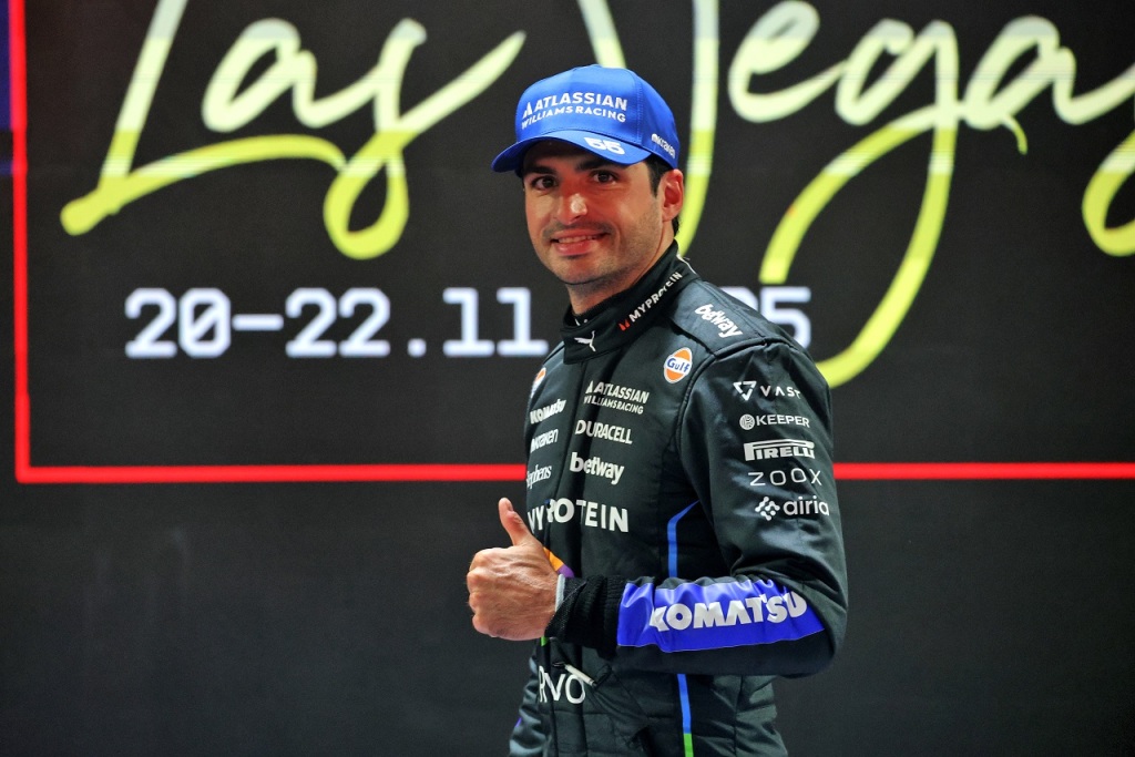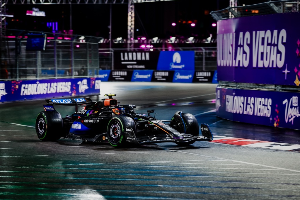 2025年F1第22戦ラスベガスGP 予選3番手のカルロス・サインツ(ウイリアムズ)がポールのランド・ノリス(マクラーレン)を祝福