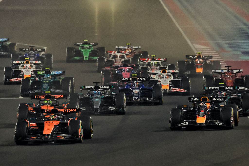 2025年F1第23戦カタールGP 決勝スタート直後のオスカー・ピアストリ(マクラーレン)とマックス・フェルスタッペン(レッドブル)