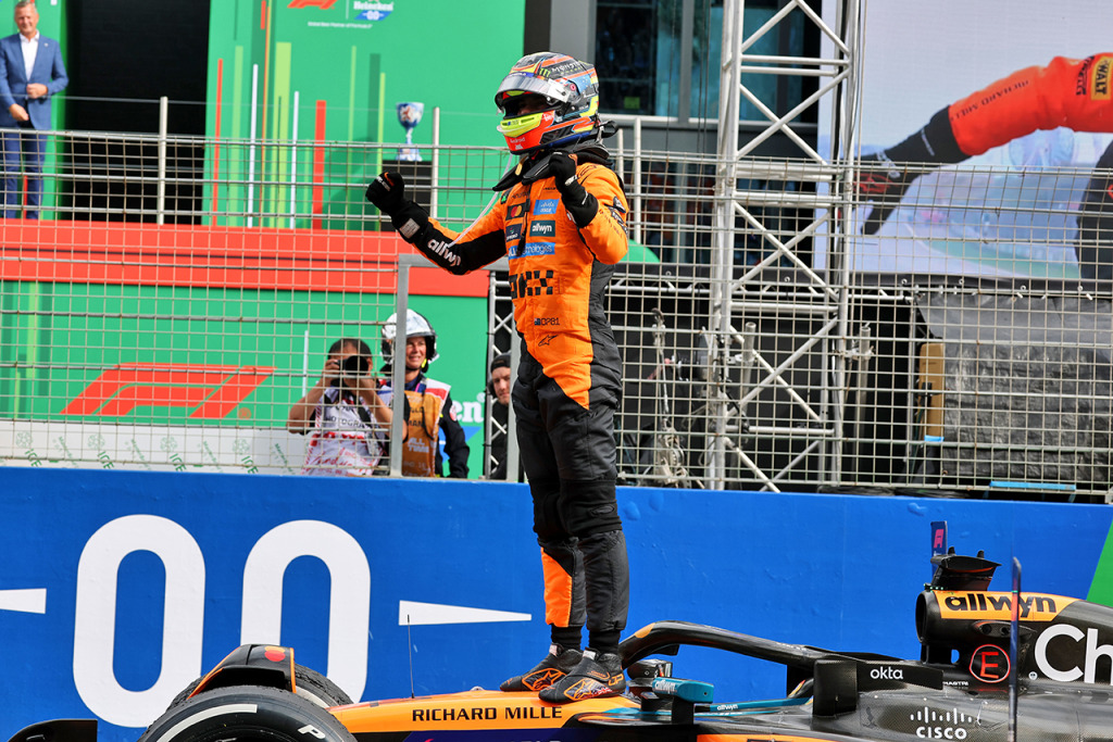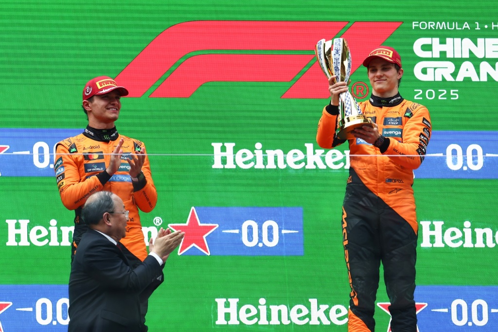 優勝したオスカー・ピアストリと2位ランド・ノリス(マクラーレン)