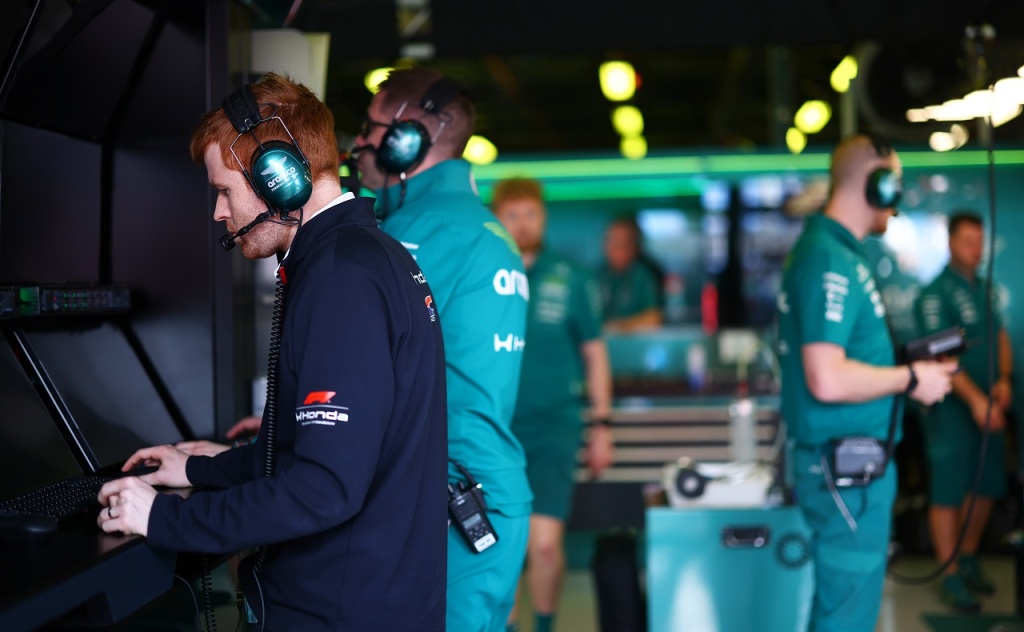 ランス・ストロール(アストンマーティン)のマシンの作業を行うメカニックたち
