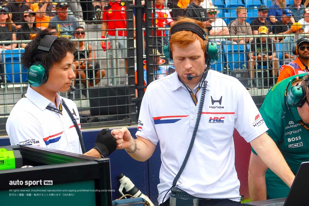 2026年F1第1戦オーストラリアGP グリッドでAMR26を見守るホンダ・レーシング(HRC)の渡辺康治社長