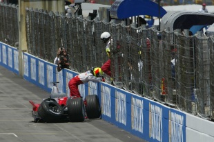 結局この年、フェラーリとブリヂストンはタイトルを逃した。そういう意味ではこのルール変更は成功したように見える。しかし、安全性という面において、ブリヂストンのタイヤはライバルのミシュランに劣ることはなかった。それを象徴したのが、アメリカGPだった。フリー走行でトヨタのラルフ・シューマッハーが左リヤタイヤをバーストさせてクラッシュ。幸いシューマッハーは大事に至らなかったものの、レースを欠場する事態となった。