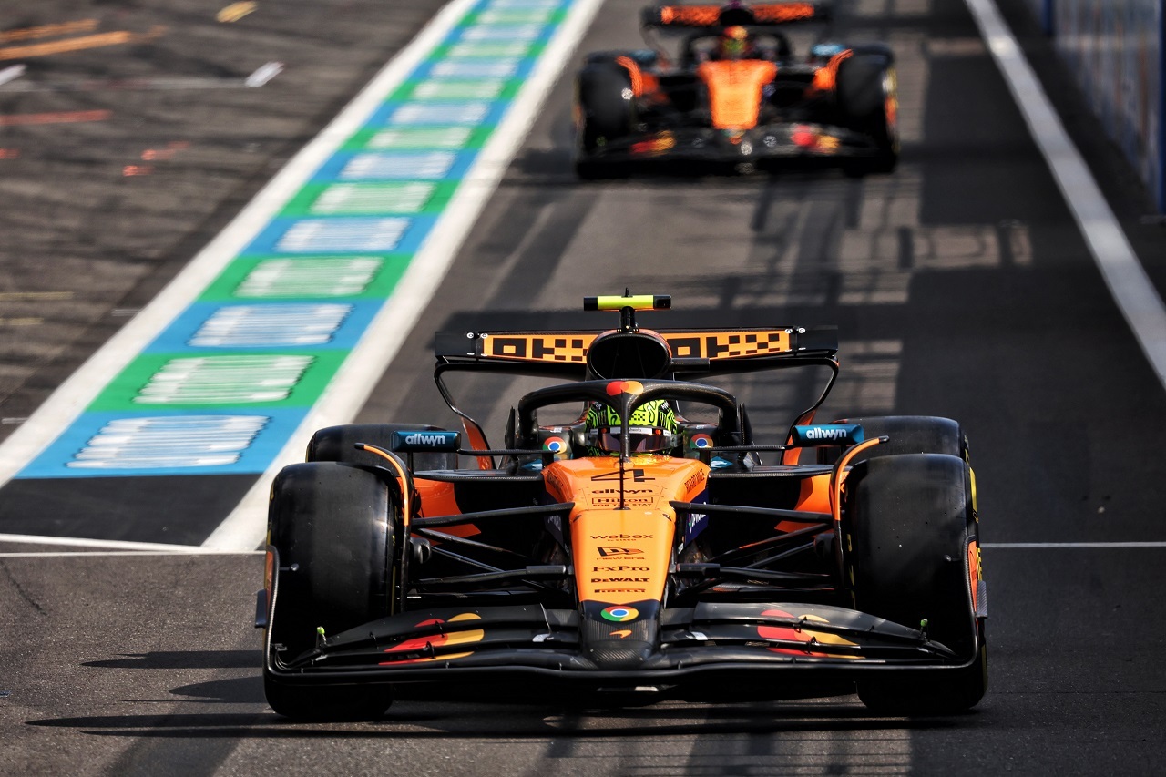 ピアストリはFP1でノリスに0.504秒差をつけてトップタイムを記録。スプリント予選のSQ1でも首位を維持するが、SQ2では最初のアタックラップのタイム(1分41秒736)をトラックリミット違反により取り消され、2回目のラップで10番手というぎりぎりの位置でSQ3に進出した。しかしSQ3では再び圧倒的な速さを発揮。2番手マックス・フェルスタッペン(レッドブル)には0.477秒、ノリスには0.618秒の大差をつけて、スプリントポールを獲得した。