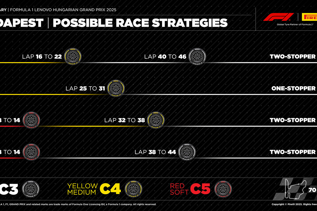 2025年F1第14戦ハンガリーGPの決勝レースは、日本時間8月3日(日)の22時にスタート。レースに向けて、ピレリが各ドライバーが残しているタイヤのコンパウンドとセット数を発表した。