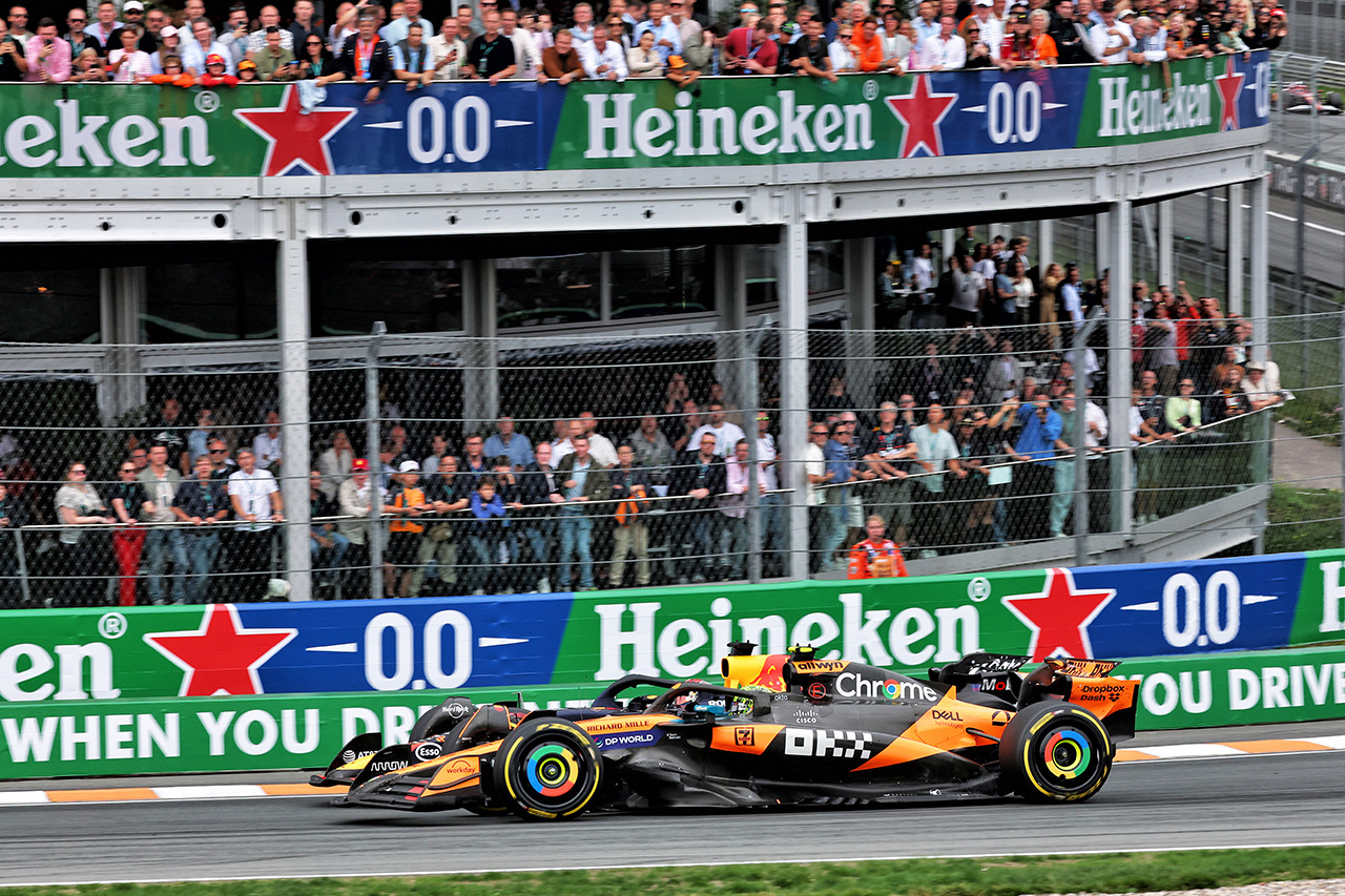 15周目を迎えるころ、ザントフォールト・サーキットに雨粒がわずかに落ち始めるもタイムにはほとんど影響はなく、18周目にはノリスがピアストリとのギャップを3.2秒まで縮めた。