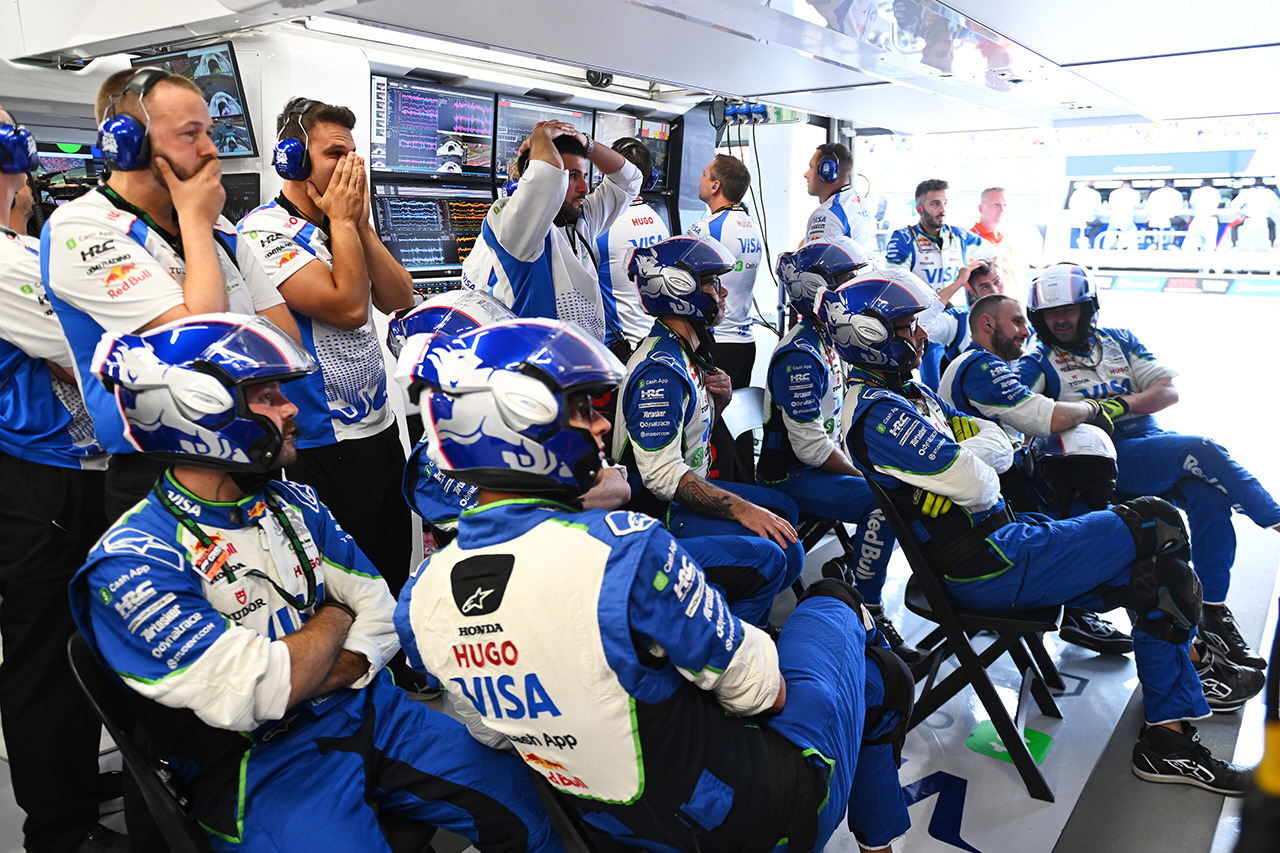 58周目にレース再開。13番手の角田はVSC中に無線でスロットル系のトラブルを訴えていたが、59周目には1ストップ(ステイ組)のガブリエル・ボルトレート(キック・ザウバー)をかわし12番手に浮上する。