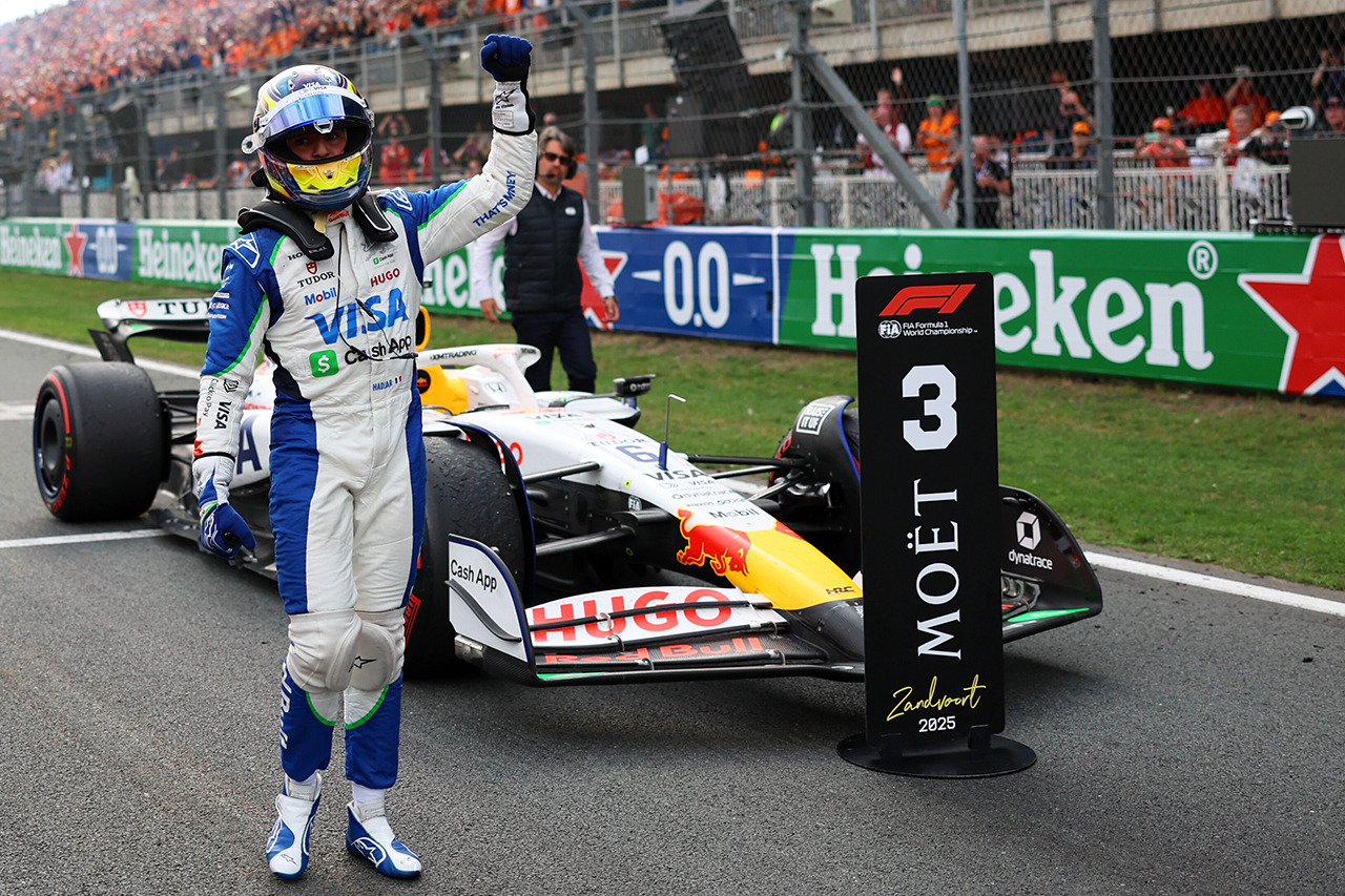 2位にマックス・フェルスタッペン(レッドブル)、3位にアイザック・ハジャー(レーシングブルズ)が続いた。角田裕毅(レッドブル)は9位となった。