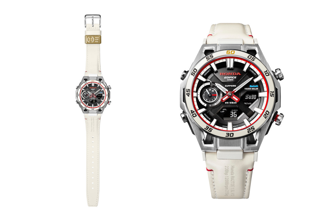 今回発表されたエディフィスの新製品は、伝説的勝利を収めたホンダのF1マシンをオマージュした特別仕様となり、カラーリングやディテールなどホンダのレーシングスピリットが惜しみなく注ぎ込まれている。