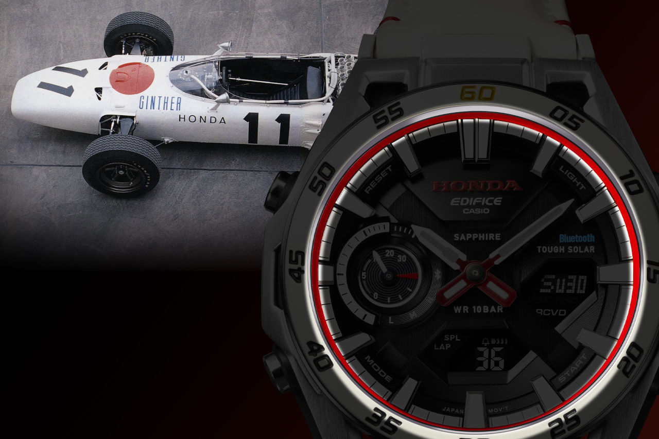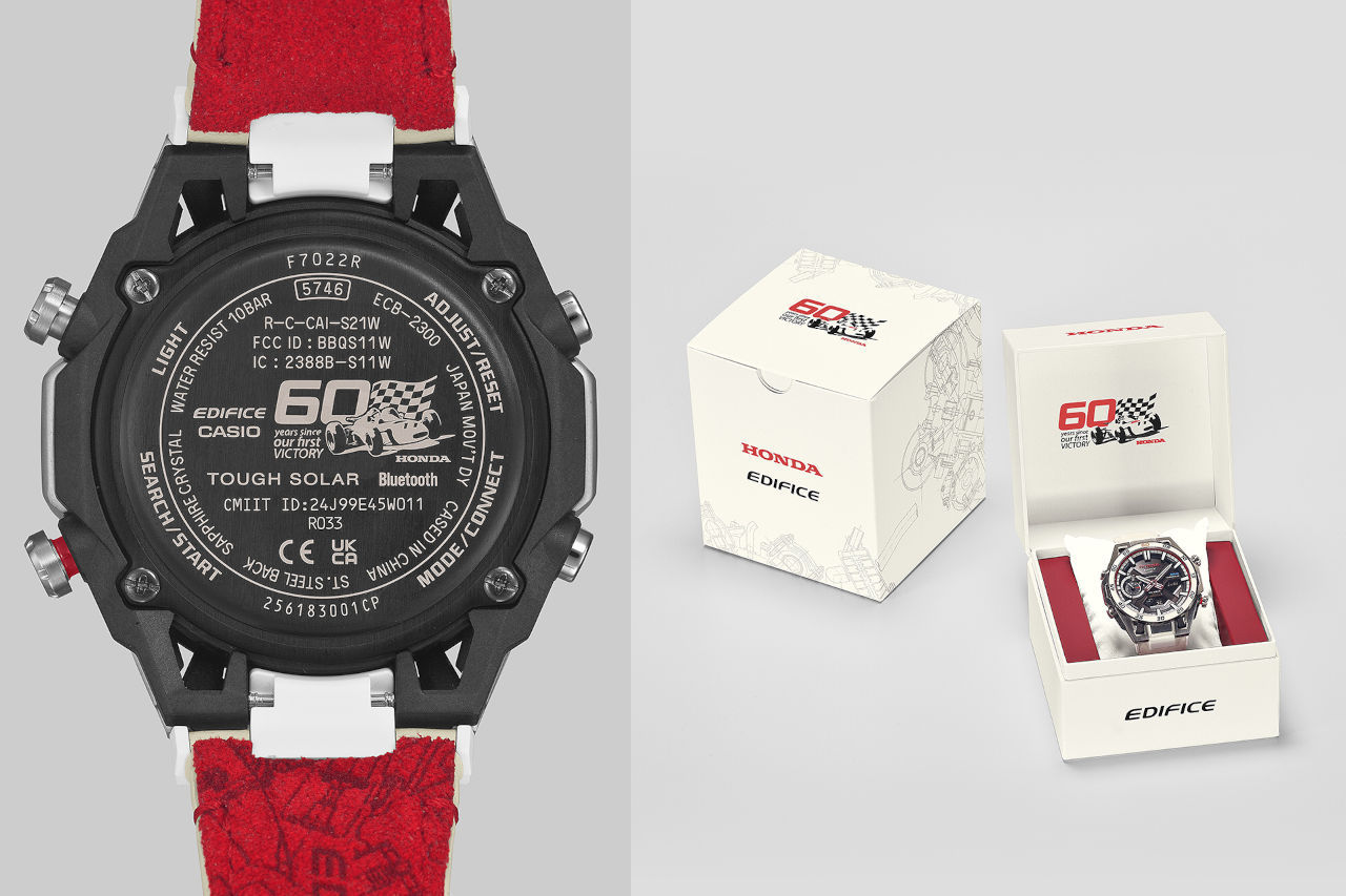 カシオ計算機は、“Speed and Intelligence”をコンセプトとする腕時計『EDIFICE(エディフィス)』の新製品として、ホンダのF1初優勝60周年記念コラボレーションモデル『ECB-2300HR』を2026年3月に発売すると発表した。
