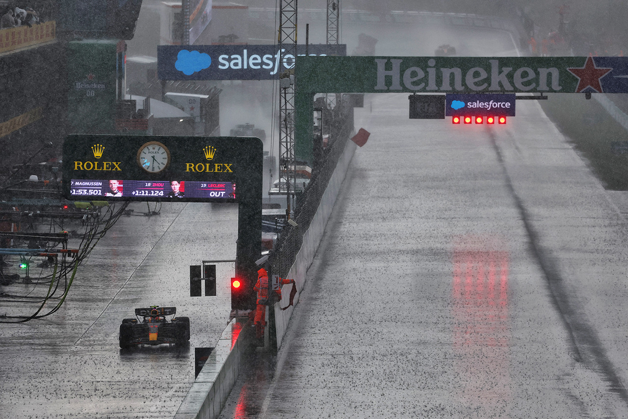 しかし、トップのフェルスタッペンが1周目のターン13に差し掛かろうかというタイミングでザントフォールト・サーキットに雨粒が降り注ぐ。