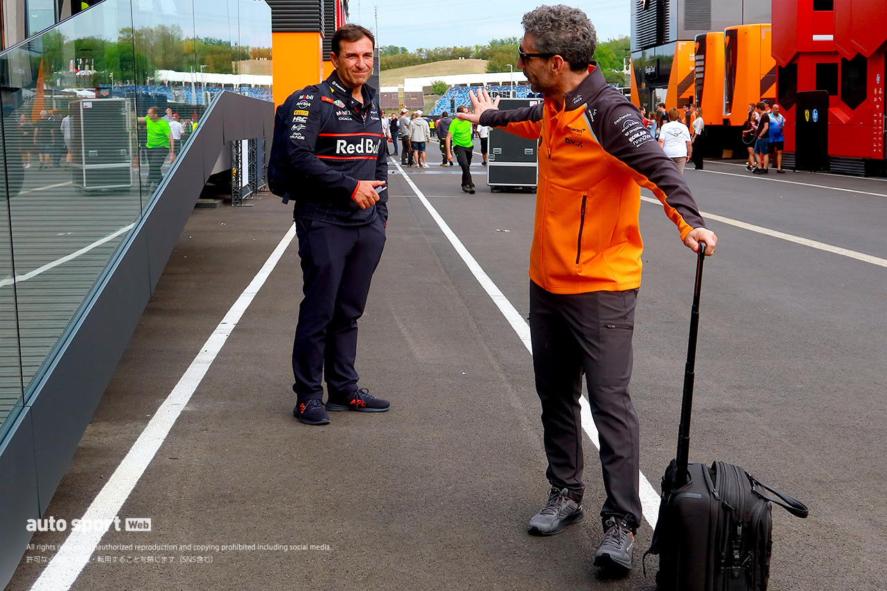 レッドブルのテクニカルディレクターを務めるピエール・ワシェと、マクラーレンのアンドレア・ステラ代表