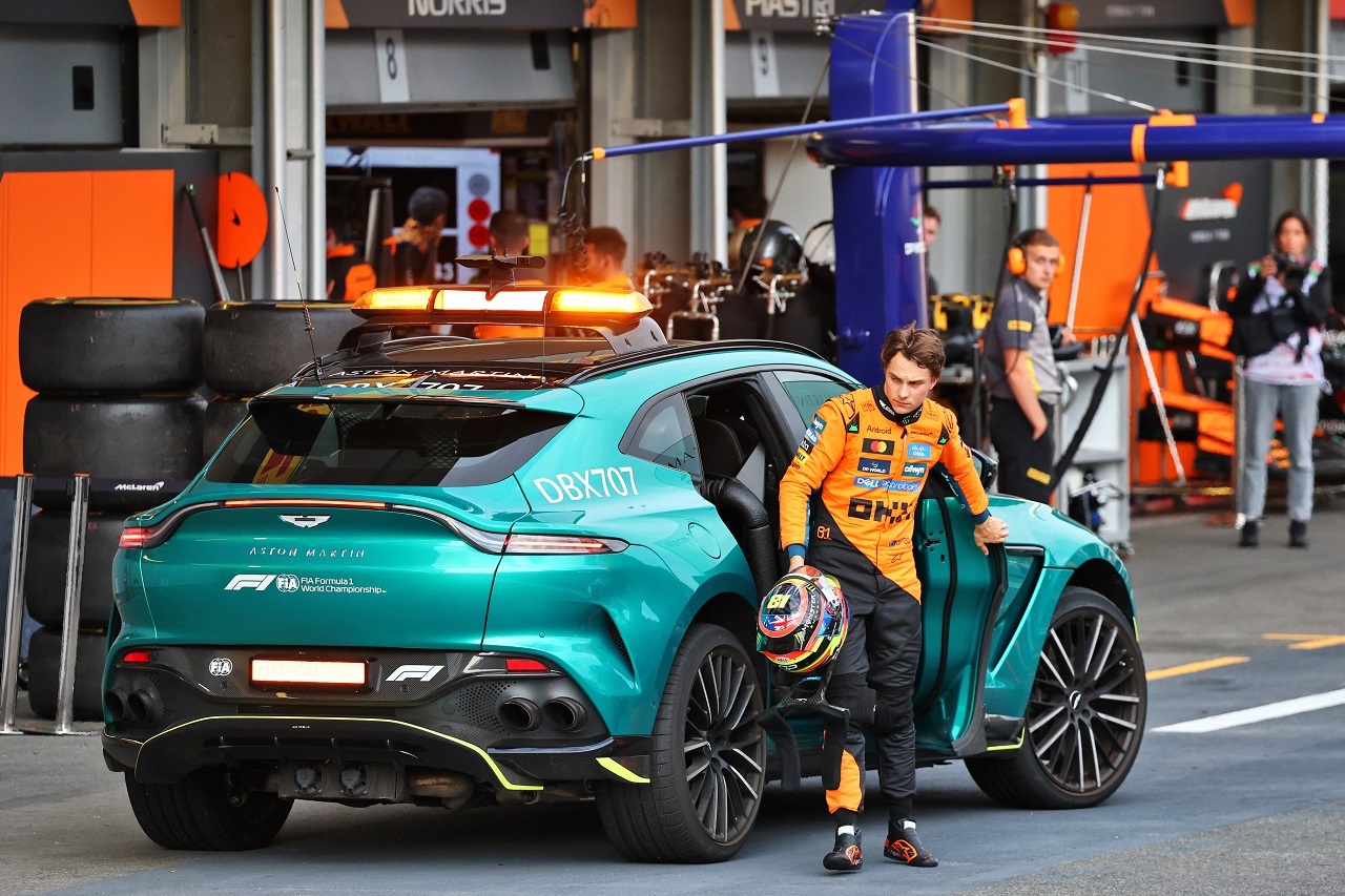 選手権首位のピアストリは、予選Q3でタイムを出す前にクラッシュを喫し、決勝を9番グリッドで迎えることになった。さらにスタート時、ジャンプスタートをして、ブレーキを踏み、アンチストールシステムが作動、ターン1に最後尾で入っていくことに。ターン3でピエール・ガスリー(アルピーヌ)を抜いた後、ターン5でエステバン・オコン(ハース)のアウト側から強引に仕掛けた際に、左前輪をロックさせてウォールにクラッシュ。ピアストリはその場でリタイアし、ノーポイントでレースを終える結果になった。