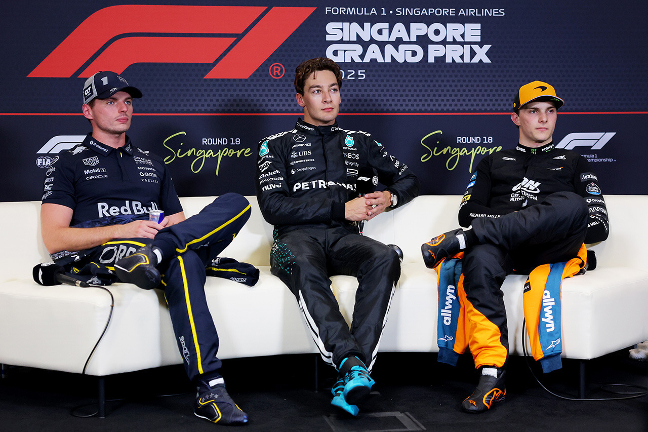 2025年F1第18戦シンガポールGPの予選が行われ、ポールポジション〜5番手のドライバーたちが土曜日を振り返った。ポールポジション〜5番手のドライバーはジョージ・ラッセル(メルセデス)、マックス・フェルスタッペン(レッドブル)、オスカー・ピアストリ(マクラーレン)、アンドレア・キミ・アントネッリ(メルセデス)、ランド・ノリス(マクラーレン)だ。
