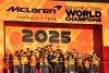 2025年コンストラクターズタイトル獲得を表彰台で祝うマクラーレン