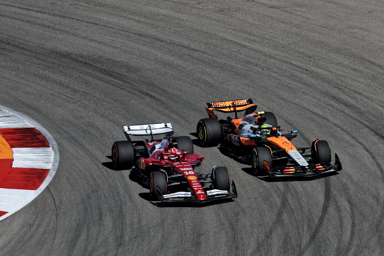 32周目にタイヤ交換を済ませたノリスが、ルクレールの後ろでコースに戻り、再びチャレンジしてきた。ルクレールは巧みにディフェンスし続けたものの、51周目に抜かれ、3位フィニッシュとなった。