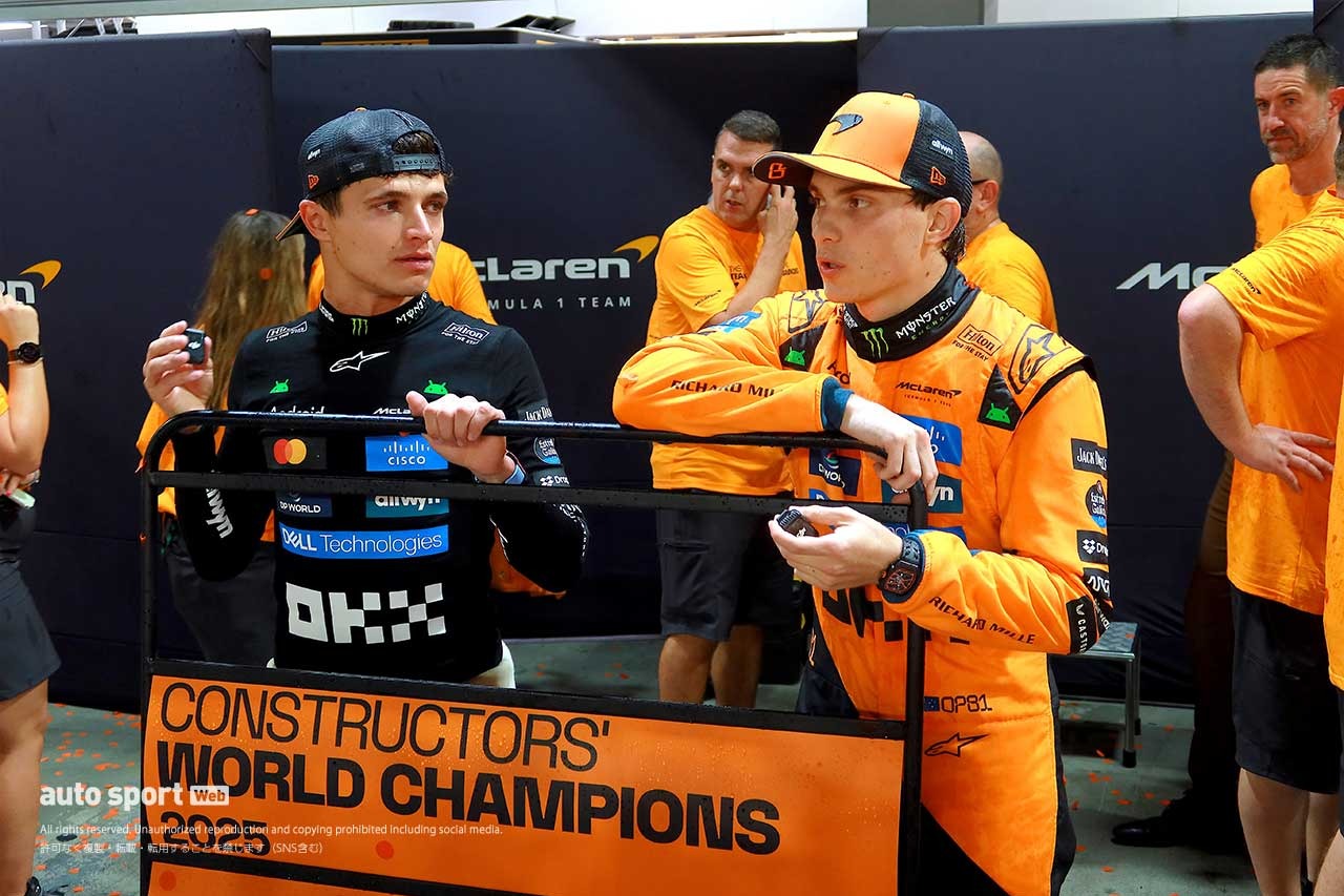 シンガポールGPでコンストラクターズ選手権を制したマクラーレンだが、スタート直後の3コーナーでオスカー・ピアストリのインにランド・ノリスが飛び込み、軽く接触。結果、ノリスが2番手の座をピアストリから奪って、最終的にノリスが3位でフィニッシュ。4位のピアストリに先着した。