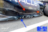 また旧型ではフロアエッジが4枚のフィンで構成されていたが、新型には前方に1枚フィンが追加され、5枚構成に変更されている(写真2の青矢印)。
