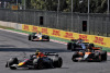 決勝レース開始時の天候は晴れ、気温26度、路面温度52度、湿度25%というドライコンディションだ。フォーメーションラップを終え、迎えたスタートでは、ポールポジションのランド・ノリス(マクラーレン)、2番手シャルル・ルクレール(フェラーリ)、3番手ルイス・ハミルトン(フェラーリ)、5番手マックス・フェルスタッペン(レッドブル)が4ワイドで1コーナーに飛び込んだ。しかしフェルスタッペンはアウト側に膨らんでしまい、トップ3はノリス、ルクレール、ハミルトンという当初の順位で1周目を終えることに。フェルスタッペンはそのまま4番手を走り続け、お咎めなしとなったことに5番手のジョージ・ラッセル(メルセデス)は無線で憤りを示した。