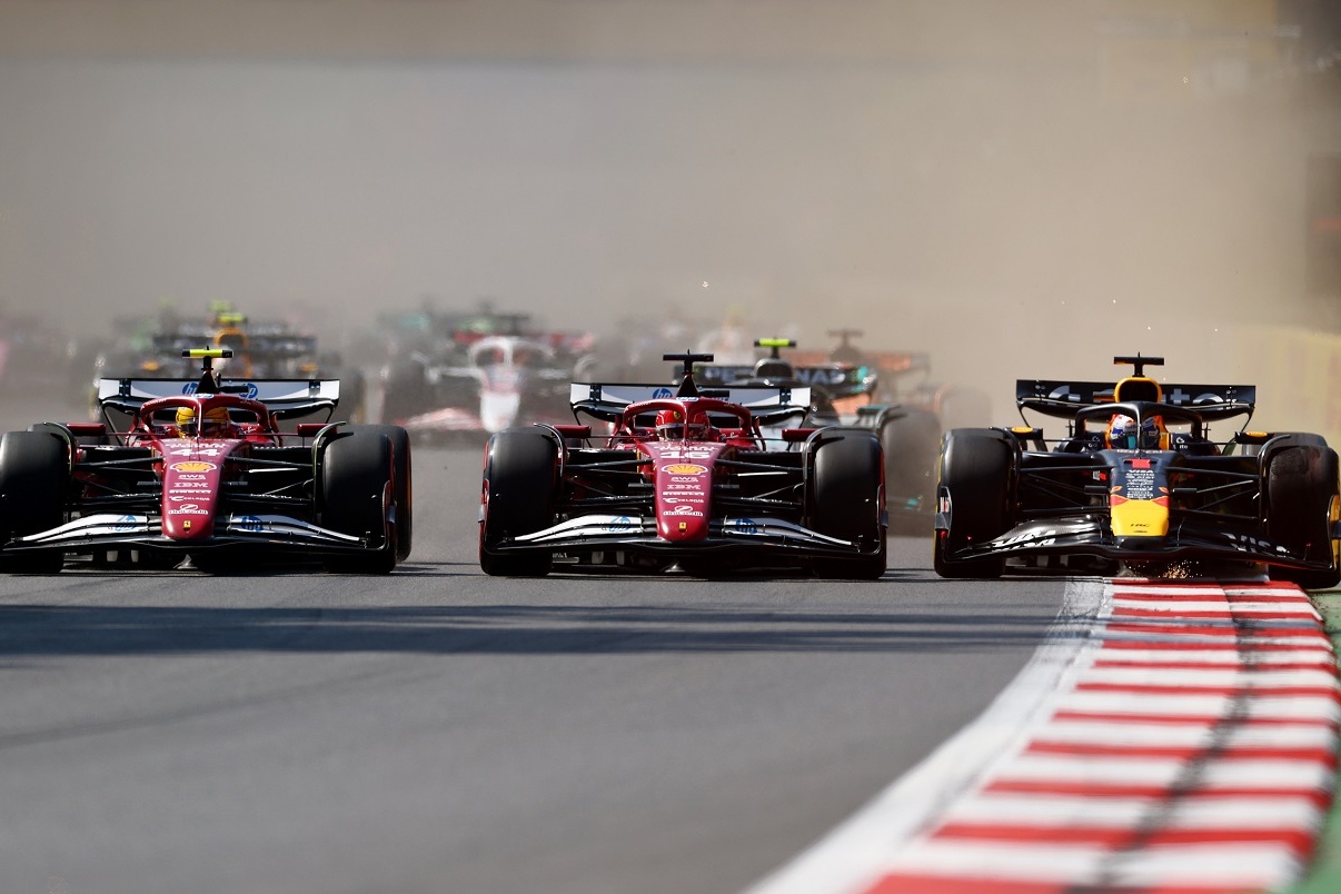 2025年F1第20戦メキシコシティGP スタート直後、フェラーリ2台に並びかけるマックス・フェルスタ2025年F1第20戦メキシコシティGP スタート直後、フェラーリ2台に並びかけるマックス・フェルスタッペン(レッドブル)ッペン(レッドブル)