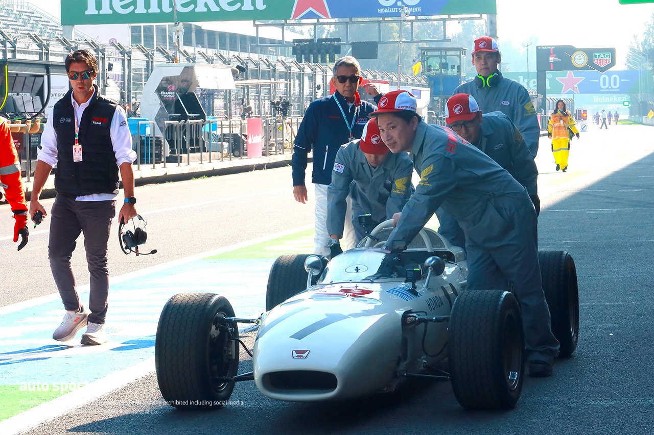 今年のF1メキシコシティGPは、ホンダがF1で初優勝した1965年から60年目の節目の年。ということで、メキシコシティGPが開催されたエルマノス・ロドリゲス・サーキットで日曜日の朝に、60年前に初優勝を飾ったホンダRA272によるデモ走行イベントが行われた。そこで今回は現場写真日記特別編として、RA272の走行イベントの模様をお伝えしよう。