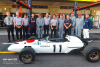 このイベントのために日本から駆けつけた本田技研工業の三部敏宏社長(左から6人目)らホンダの首脳陣たちは、1965年当時にメカニックたちが着ていたグレーのつなぎに合わせて、お揃いのグレーのポロシャツを着用していた。