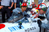 1965年当時をリスペクトしたグレーのシャツを着用したホンダのスタッフ。走行後には角田も笑顔に/現場写真日記特別編