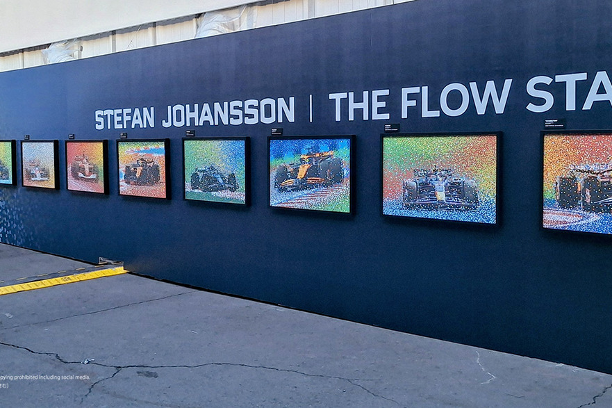 アウトドローモ・エルマノス・ロドリゲスの壁面には、ヨハンソンの作品の小さな複製画8枚が『ザ・フロー・ステーション』と題して飾られたが、その背景には拡大されたマックス・フェルスタッペンのレッドブルの描写があった。また、フェルスタッペンがマシンに乗っている様子を描いた原画が、土曜日の朝にプレスルームの入り口に展示された。