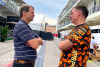 2025年F1第19戦アメリカGP パドックで立ち話をするジャーナリストのミハエル・シュミット氏と、レーシングブルズのアラン・パーメイン代表