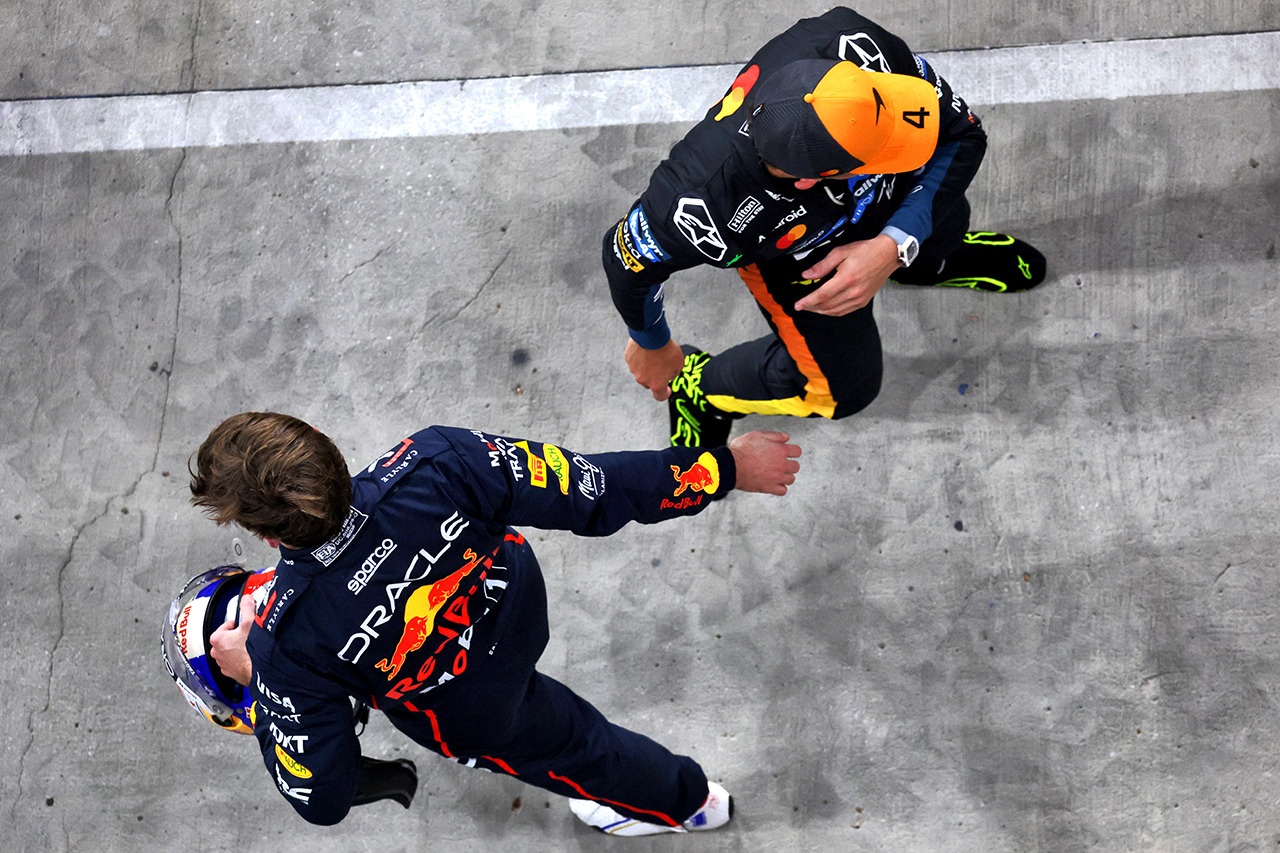 しかし、貴重なニュータイヤをここで履いてしまったことでQ3でニュータイヤのアタックは1回しかできなかった。Q3最初のアタックは、ニュータイヤのフェルスタッペンが1分22秒295で暫定ポール。ユーズドのマクラーレン勢は、ピアストリが0.3秒差の2番手、ノリスは0.4秒差の3番手だった。そしてニュータイヤを履いた最後のアタックでも、フェルスタッペンとの差を0.2秒以上縮めることはできず、ノリスが2番手、ピアストリが3番手に終わった。
