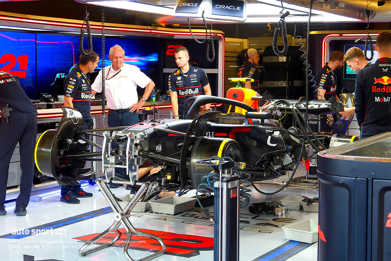 「FP3での接触事故で、フロアを旧スペックに変えなければならなかったのは痛手でした」と言う角田。HRCの折原伸太郎(トラックサイドゼネラルマネージャー)によれば、「エンジンそのものにはダメージはなかったものの、エンジンを動かす部品がいくつかサイドポッド周辺にあって、それらがダメージを受けたため、交換や修復作業が必要でした」という状況となった。