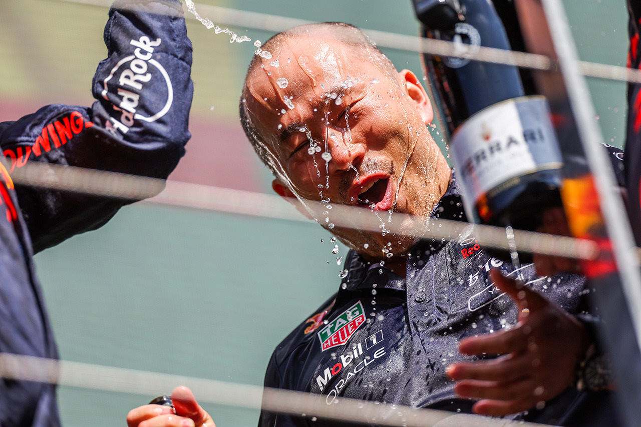 法原も「部下思いで男気ある人」と吉野をいまも敬愛する。法原にはメカニックとして忘れられないレースがある。2022年のベルギーGPだ。レッドブルがワン・ツーフィニッシュを飾ったレース後の表彰式にレッドブルを代表して表彰台に上がったのが、吉野だった。それを見ていた法原は、思わず鳥肌が立ったという。