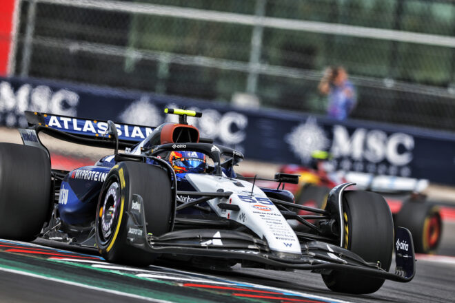 ブルーを基調とした通常カラーリングに加え、アメリカGPで実施された2002年のマシン『FW24』をモチーフとし、ブルーとホワイトを配色した特別カラーリングも高評価を集めました。2002年はウイリアムズのタイトルスポンサーであるアトラシアンが設立された年であり、ウイリアムズがBMWエンジン、ファン・パブロ・モントーヤ、ラルフ・シューマッハーを擁してコンストラクターズランキング2位を手にした年でもあります。