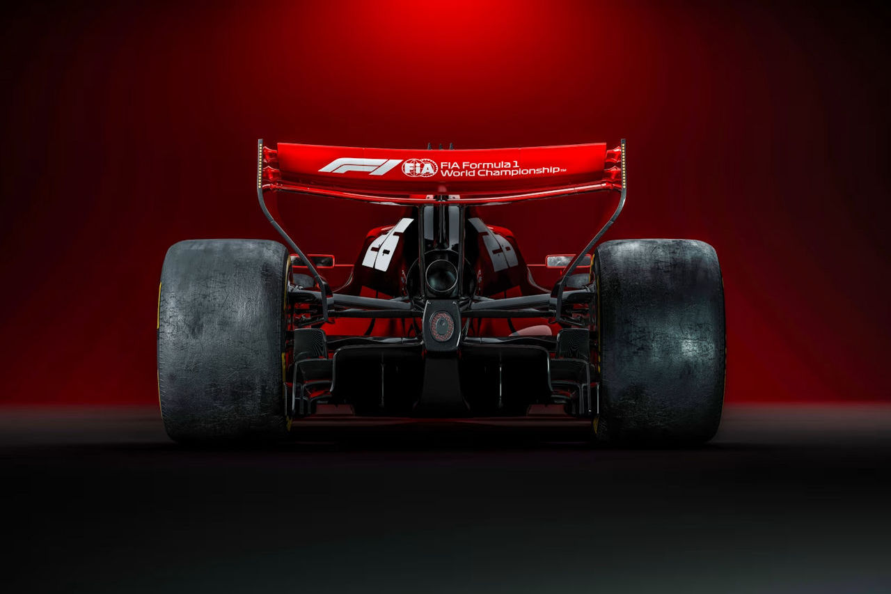 F1が発表した2026年F1新世代マシンの最新レンダリング画像(リヤ)