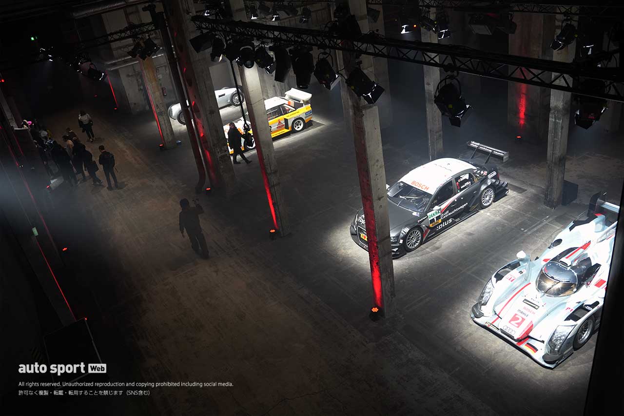 まさに、アート会場。これまでのアウディのモータースポーツの歴史を象徴するマシンが並べられています。5連覇を含むル・マン24時間、WEC(FIA世界耐久選手権)の実績が近年では象徴的ですが、個人的にはこちらスーパーGTとコラボで特別戦を行ったDTM(ドイツ・ツーリングカー選手権)マシンが懐かしい。