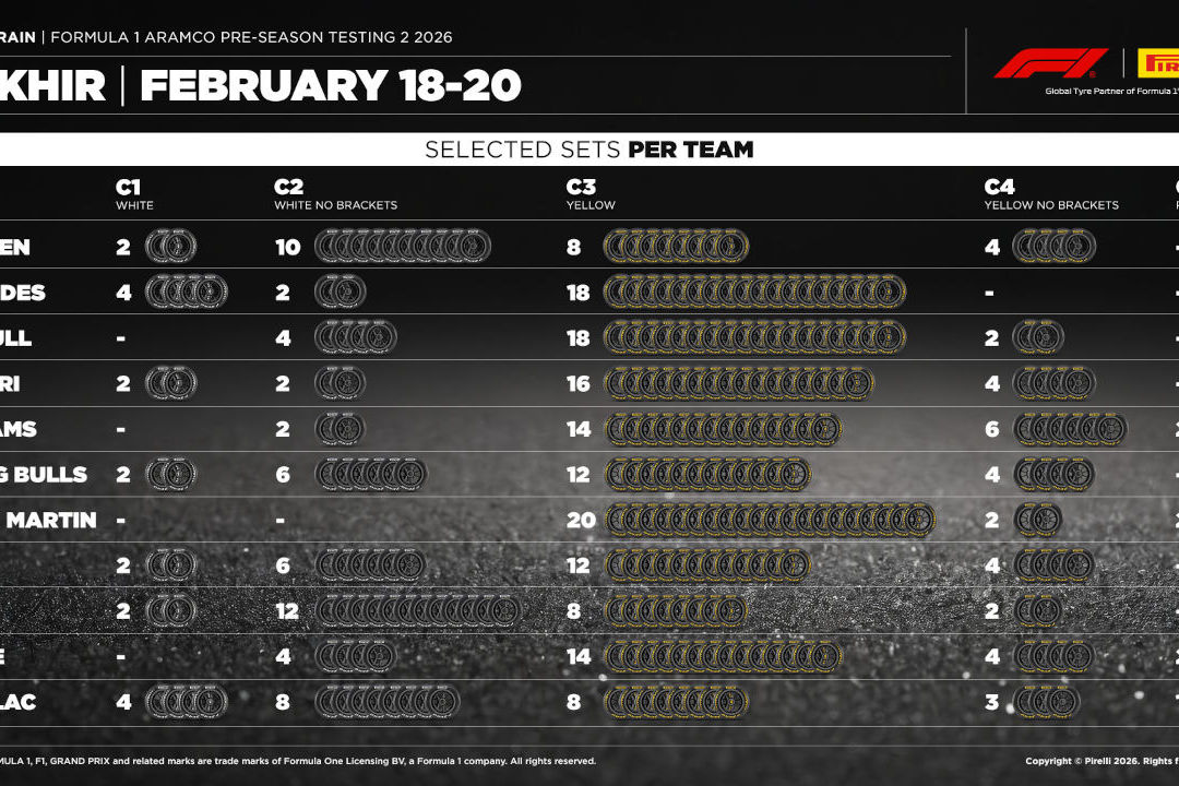 2026年はF1の技術規則が大きく変わったため、スペインのバルセロナで行われた非公開シェイクダウン、そしてバーレーンでのプレシーズンテストが2回と、シーズン開幕前に3回の走行機会が設けられた。1回目のテストでは、使用できるタイヤはC1、C2、C3の3種類に限られたが、2回目のテストにタイヤの制限はなく、C1からC5までの5種類のなかから各チームが最大24セットを選択した。