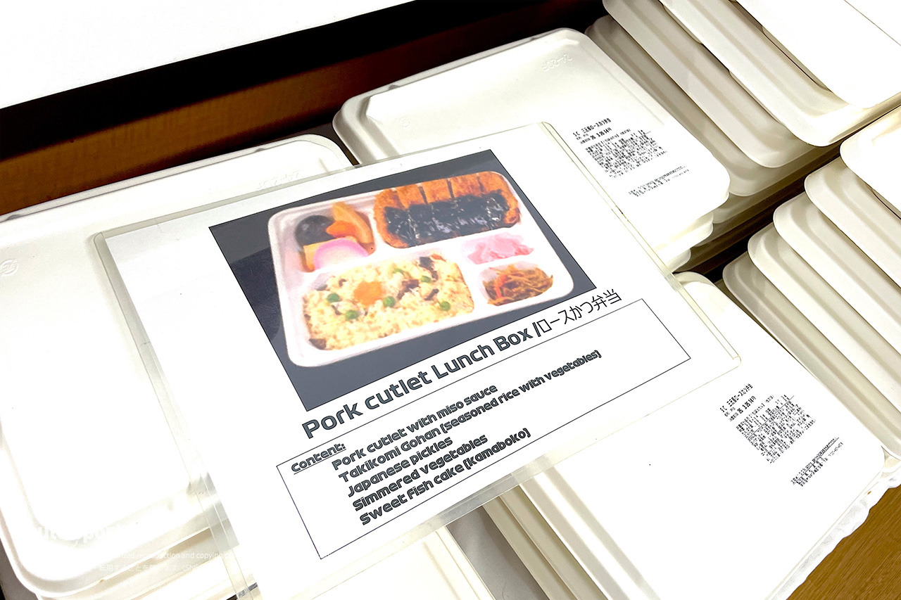 鈴鹿のお弁当は朝食(軽食)、昼食(弁当)、夕食(弁当)と1日に3度提供される。しかも、弁当は昼食が4種類、夕食が3種類と豊富。海外の人たちが理解しやすいように、中身の写真が提示されている。日本系の航空会社も機内食をサービスする際に写真を見せるのと同じだ。「ビーフorフィッシュ」と言われても、どんな料理かがわからないと選びにくい。さらに2025年からはベジタリアン弁当も追加。こういう細やかな心遣いが鈴鹿の特徴だ。
