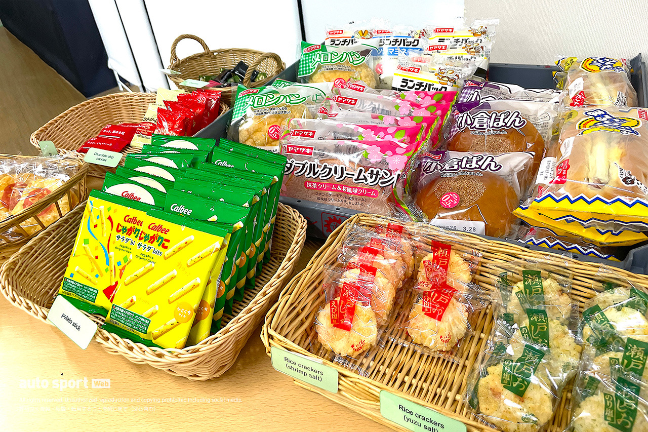 海外のメディアセンターの食事の多くはビュッフェスタイルが多いの対して鈴鹿はお弁当なので、どうしても冷めた食事となる。そこで数年前から電子レンジを置いて、いつでも温かい状態で食べられる。さらに小腹が空いたとき用に、スナック類も充実。もし鈴鹿が年に2回あったら、筆者の現場取材活動ももう少し寿命が延びていたかもしれない。