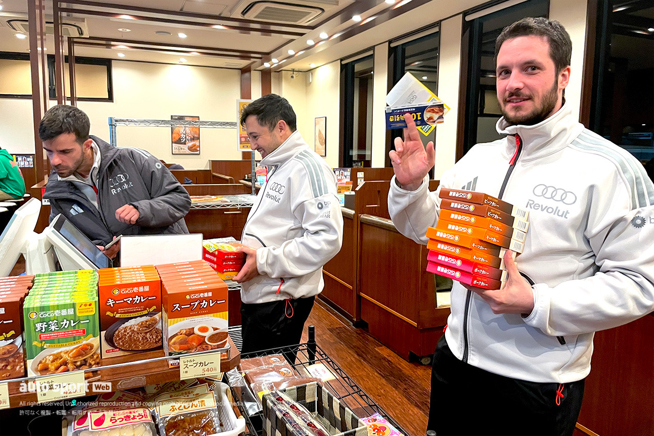 バルテリ・ボッタス(キャデラック)といえば、日本GPの際に必ずと言っていいほどCoCo壱のカレーを食べるそうだが、筆者はボッタスが通う前からの常連。今年も立ち寄ったら、なんとアウディのスタッフたちがレトルトカレーを大人買いしていた!!