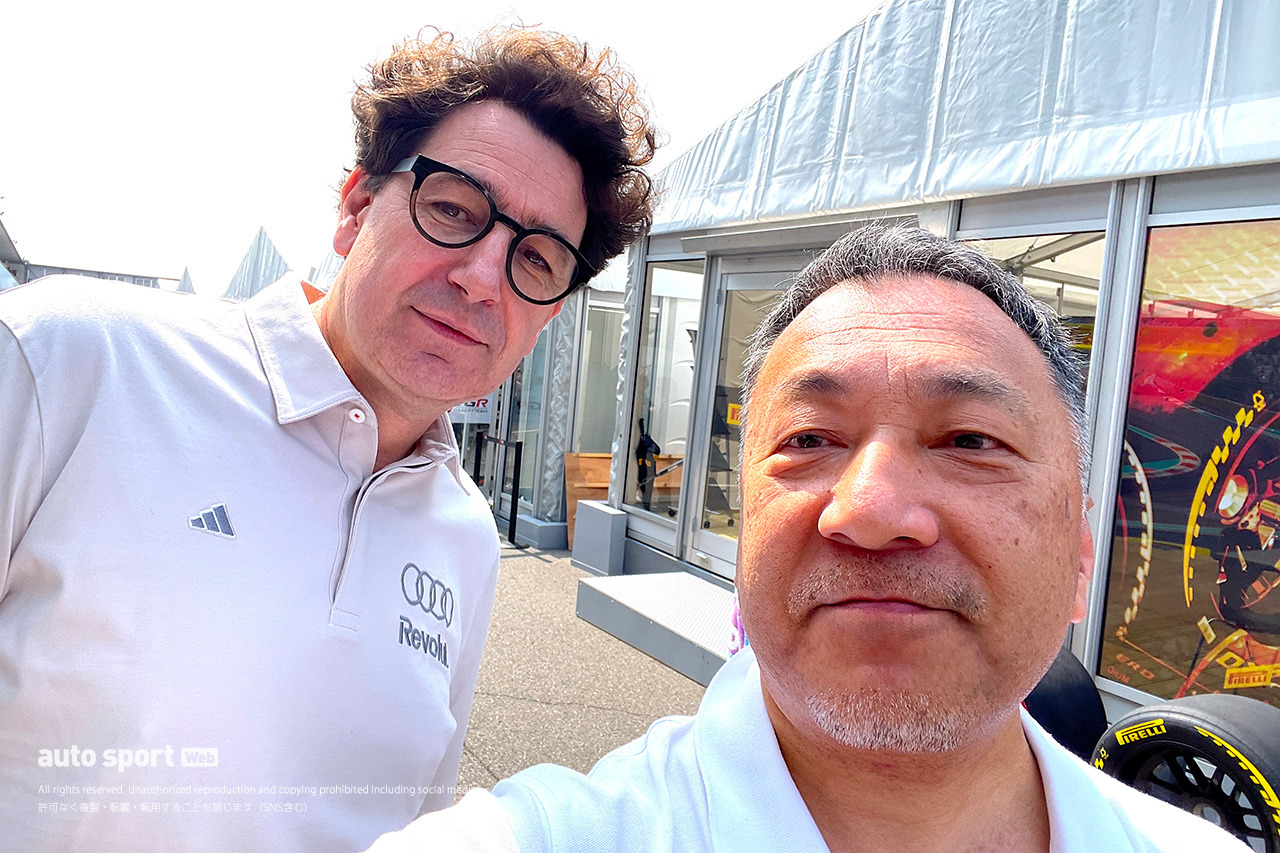 マティア・ビノットも、この機会にきちんと挨拶しておきたかった人のひとり。2022年のオランダGP後のフェラーリの会見でビノットが、レース中にマシンにトラブルが生じ、スローダウンしながらコース脇にクルマを止めた角田裕毅(アルファタウリ)のことを、「ツナミ(津波)」と表現。直後に行われたイタリアGPの国際自動車連盟(FIA)の公式会見で、筆者はビノットに次のように謝罪を要求したことがあった。