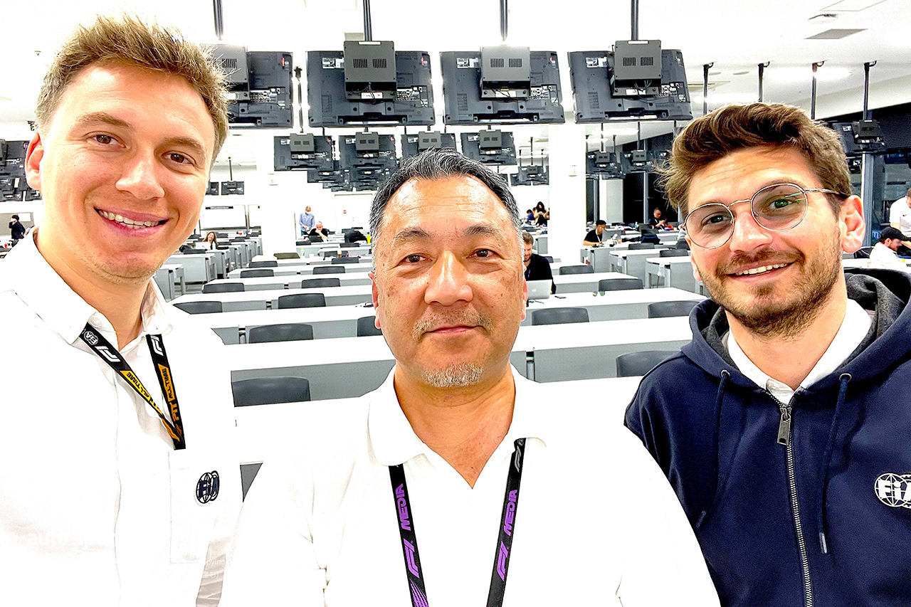 そのFIA広報に許可を得て、日曜日にFIA会見場で記念撮影した。今回の決断を下す前、ひとつだけ気がかりだったのは、筆者が現場取材をやめることで日本人記者が皆無になること。しかし、昨年、ふたりの仲間が加わった。左が小野智也くんで、右が吉田知弘くん。今後の原稿の依頼はふたりを優先してください。