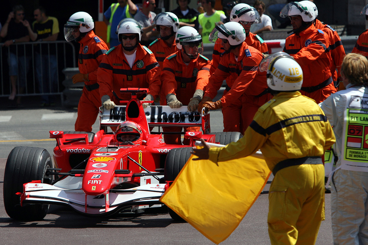 2006年、モナコGPの舞台であるモンテカルロ市街地コースでは、F1史上最も悪名高い予選に関する論争のひとつが起こった。トップタイムを記録したシューマッハーは、タイトなコーナーであるラスカス(ターン17)でマシンをとめて、イエローフラッグを出し、フェルナンド・アロンソ(当時ルノー)の最終ラップを妨害したのだ。