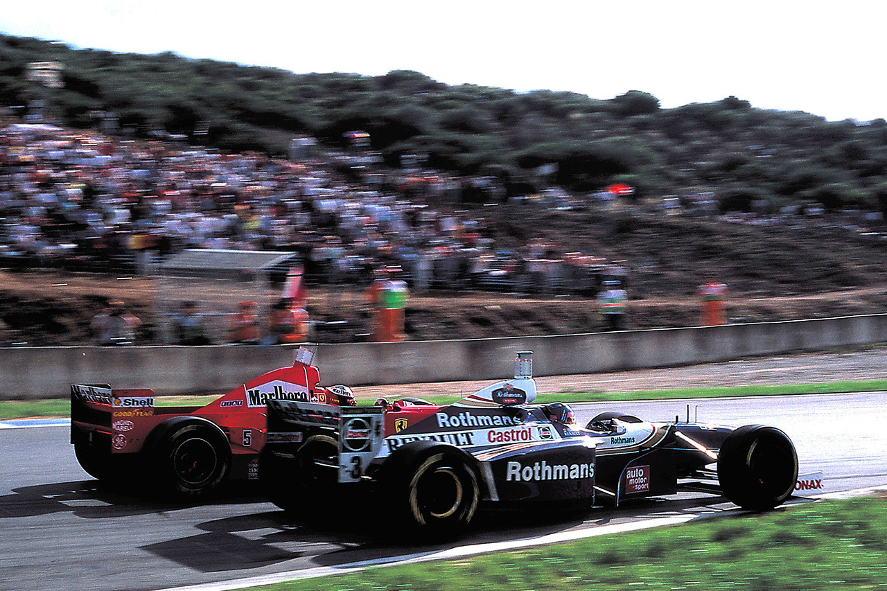 また1997年のヨーロッパGPでのタイトル争いも、今もなお衝撃的な出来事として認識されている。ジャック・ヴィルヌーヴ(ウイリアムズ)と激しいチャンピオンシップ争いを繰り広げていたシューマッハーは、モータースポーツ史に残るようなある判断を下した。それは、ヴィルヌーヴがオーバーテイクを試みた瞬間に、そのヴィルヌーヴに向かっていくかのようにマシンのステアリングを切るというものだった。