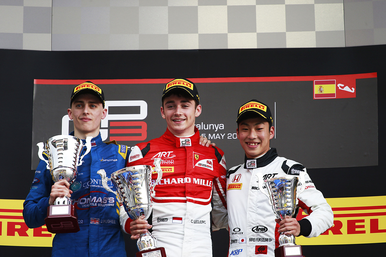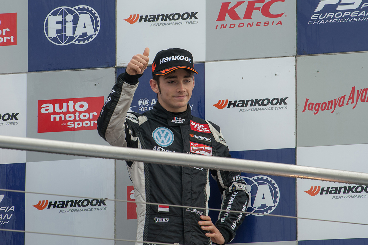 このF3での成績も後押しとなり、ルクレールは19歳を迎える2016年よりフェラーリ・ドライバー・アカデミー(FDA)に加入。同年5月にはフィオラノ・サーキットでフェラーリの2014年型マシン『F14 T』に乗り込み、フリー走行専用スーパーライセンス取得の条件を満たす距離を走った。そして同年の計5戦のFP1にハースから出走するのだった。