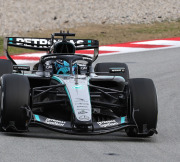1月28日(水)、スペインのバルセロナ-カタロニア・サーキットで行われたF1プレシーズンテストの3日目に、メルセデス-AMG・ペトロナス・フォーミュラ1チームのジョージ・ラッセルとアンドレア・キミ・アントネ...